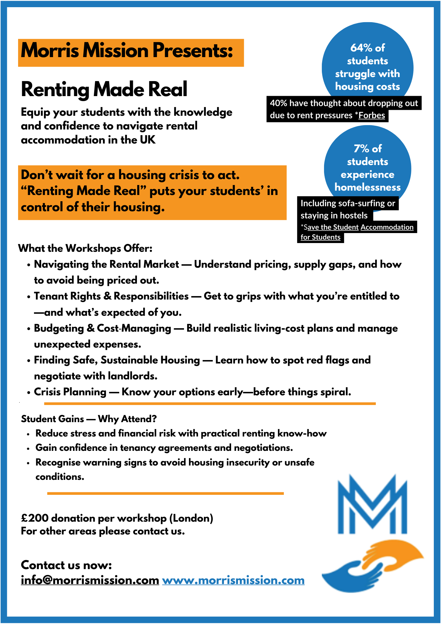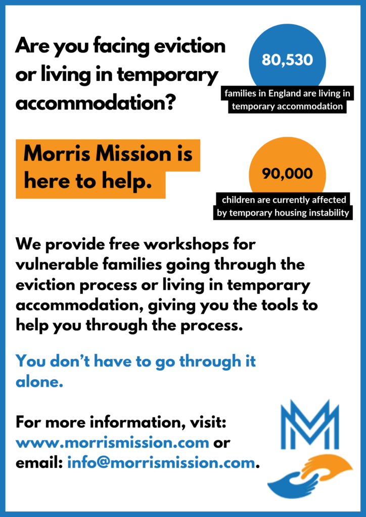 Morris Missions runs a range of workshops to support homeless applicants, vulnerable families and local authorities.